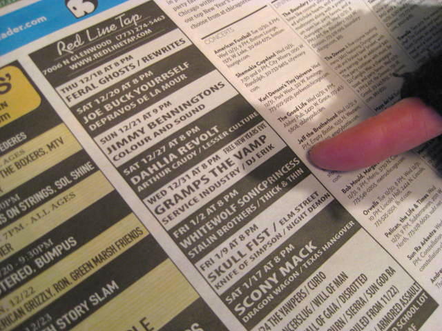 And now it’s onto 2015. Yes, sounds like an improbable year. Is it really a hoax? Probably not. And our first show is Friday, January 2 at the Red Line Tap. We are the “headliners” which means our name is in a larger font than the other bands, and we go on last. Rock and roll! – Jammer