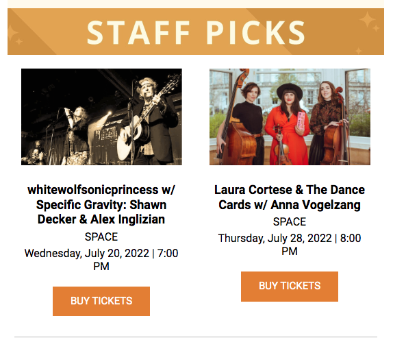 Yes. That’s right. Our show is an EvanstonSpace.com “Staff Pick!” Some reserved tables and seats are still available. Join us for an extraordinary Weds evening!