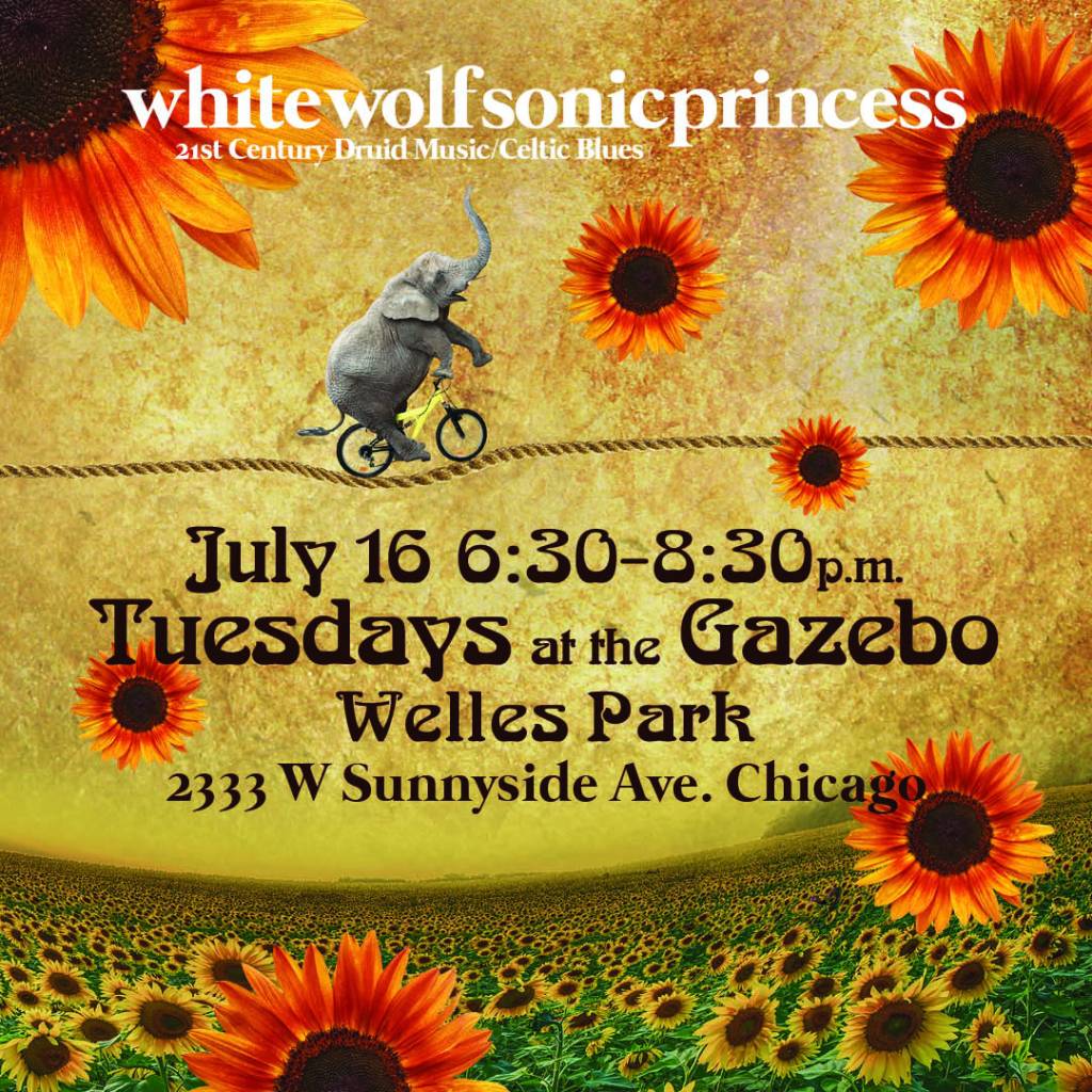 Our next show is a real treat. WWSP in full-band mode in the Gazebo at Welles Park in Chicago, IL. Just 7 of us. A free concert. We will do two 45 minute sets in the beautiful, verdant, rolling fields of a classic Chicago Park. Tuesday evening July 16. Music starts at 6:30 p.m. Hope you can join us! – Jammer