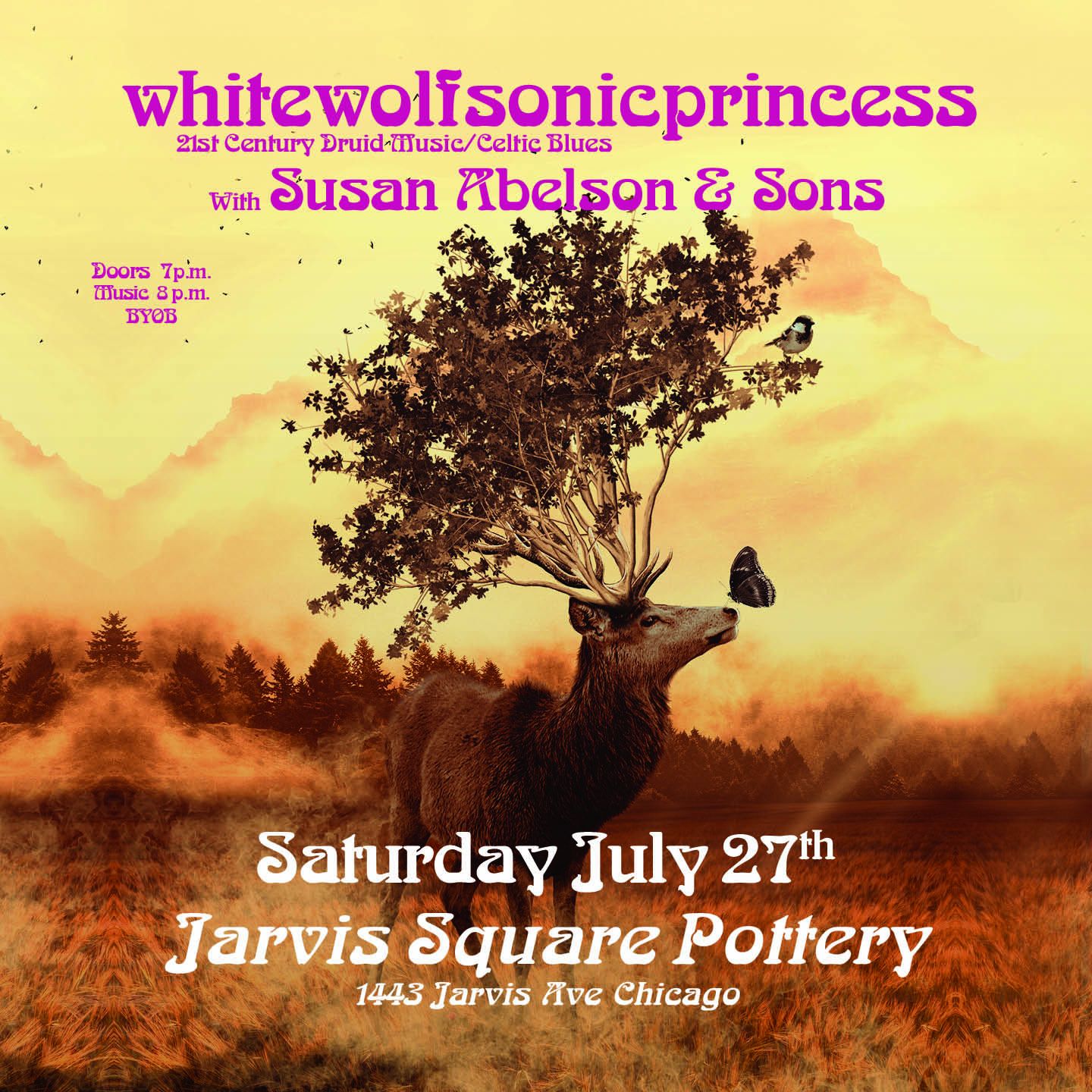 We got to play 2 1/2 songs last night in Welles Park and then the rains came. It was a “washout.” Thanks to all those who ventured out. Supposedly the sound was good for that brief flash of whitewolfsonicprincess. Oh well. Next show is inside at the wonderful, artistic oasis: Jarvis Square Pottery. Hope you will join us for this one. – Jammer