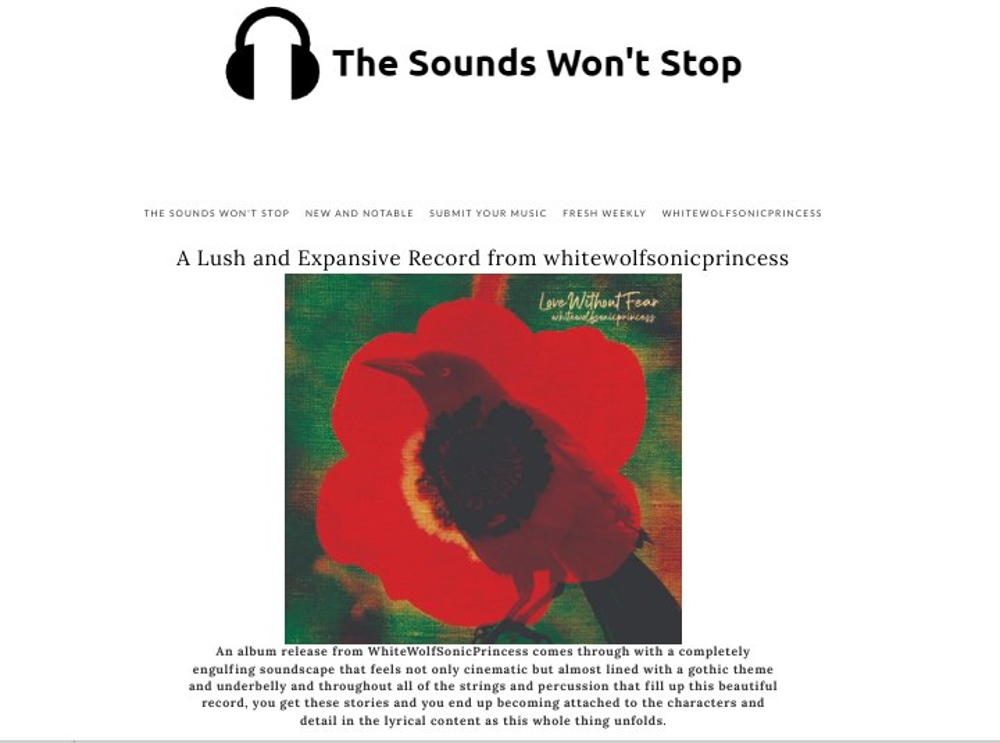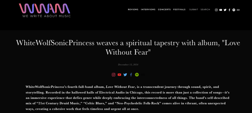 01.08.19 – Pat McDonald,HollywoodChicago.com: “… to travel with whitewolfsonicprincess in “The Alternate Boot” is to float in a dream and destiny of magical thinking, ethereal musicality and images of promise… and we all arrive together. (For the full HollywoodChicago interview go here: Interview).