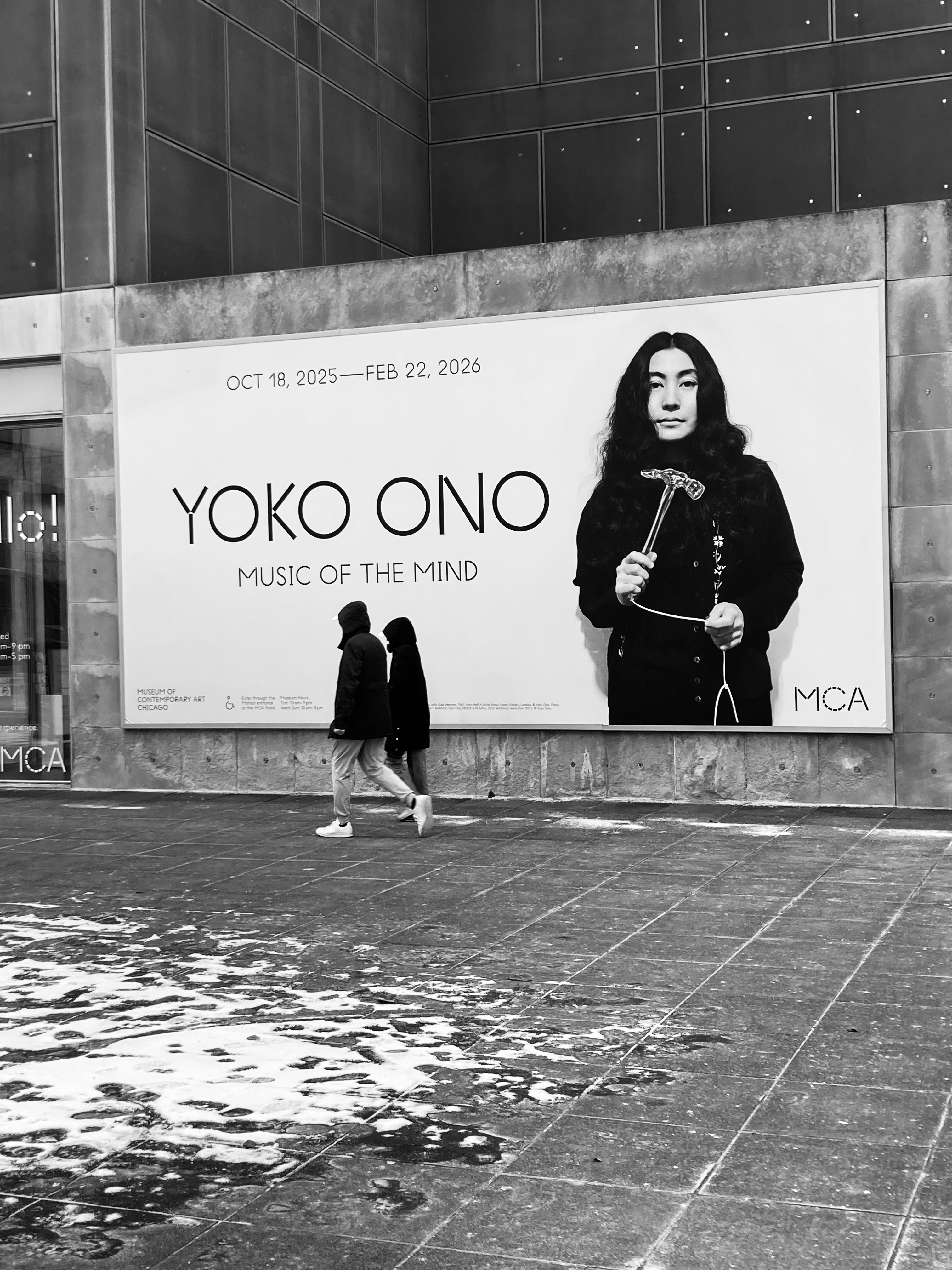 Holy Shite. Yoko Ono’s show at the MCA is absolutely fantastic. No doubt, she is one of the greatest artists of the 20th & 21st Centuries. I have come a long way around. I remember in high school sort of hating on Yoko for breaking up the Beatles. But it was a bad rap. John & Paul just didn’t see eye to eye anymore.