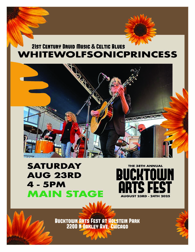 Yesterday afternoon, a gorgeous, late summer day in Chicago, everything clicked. You can’t expect it, or plan for it, or want it too much; best to just meet the day with eyes, heart & head wide open. We were lucky to be on the main stage at the corner of Belden & Oakley, playing a set at The 38th annual Bucktwon Arts Fest. It was the perfect place to be, at just the perfect time. Blue sky, blazing sun, puffy white clouds, enormous, leafy-green, sweetly-looming trees providing a bit of shade. A professional stage setup, a bold, enveloping sound coming from a massive array of old-school speakers. The sound-tech, a no nonsense, total pro, expertly dialed us in. There was a rollicking, happy, partying crowd, a gathering of the beautiful people. An amazing cross-section of humanity. The six of us played our set with conviction & fire. It was all very satisfying & gratifying. What to say? The best feeling in world. – Jammer