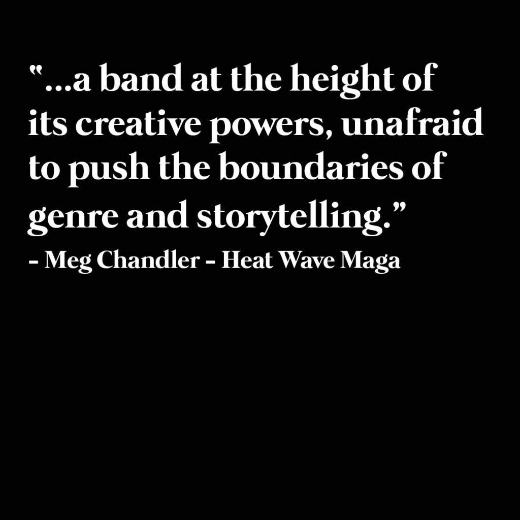 “…a band at the height of its creative powers, unafraid to push the boundaries of genre and storytelling.” “… evocative and fearless work, proving that this ensemble is a force to be reckoned with in the modern musical landscape.” – Meg Chandler – Heat Wave Magazine